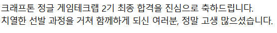 약 한 달 정도를 크래프톤 게임 테크랩 선발과정에 집중하니라 다른 공부 포스팅을 못한 것 같은데,