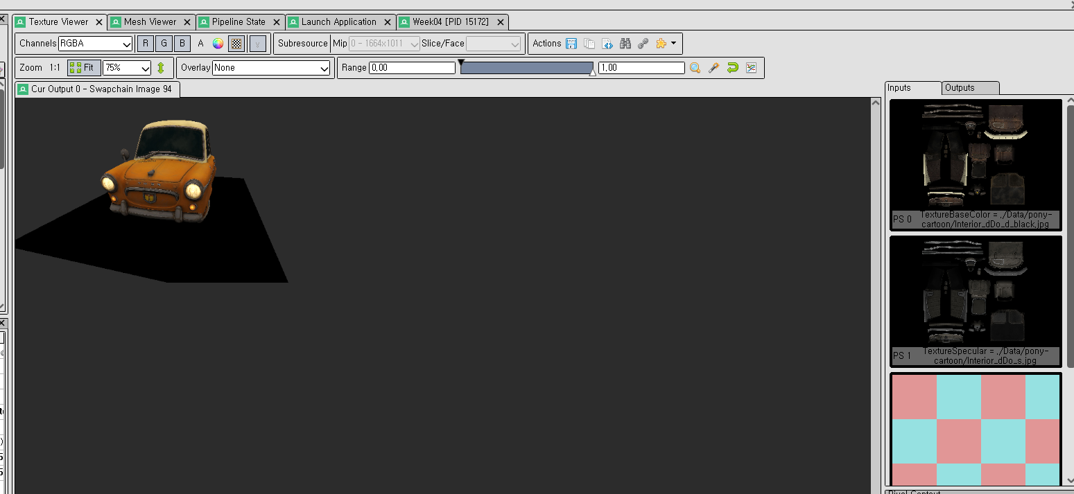 renderdox으로 보면 texture가 잘 들어오는 것을 확인할 수 있다.
