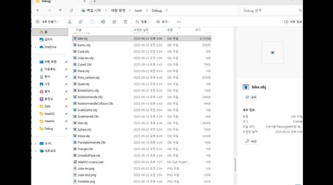 ObjViewerDebug의 exe파일에서는 UI를 빼고 draw하도록 설정했다.
